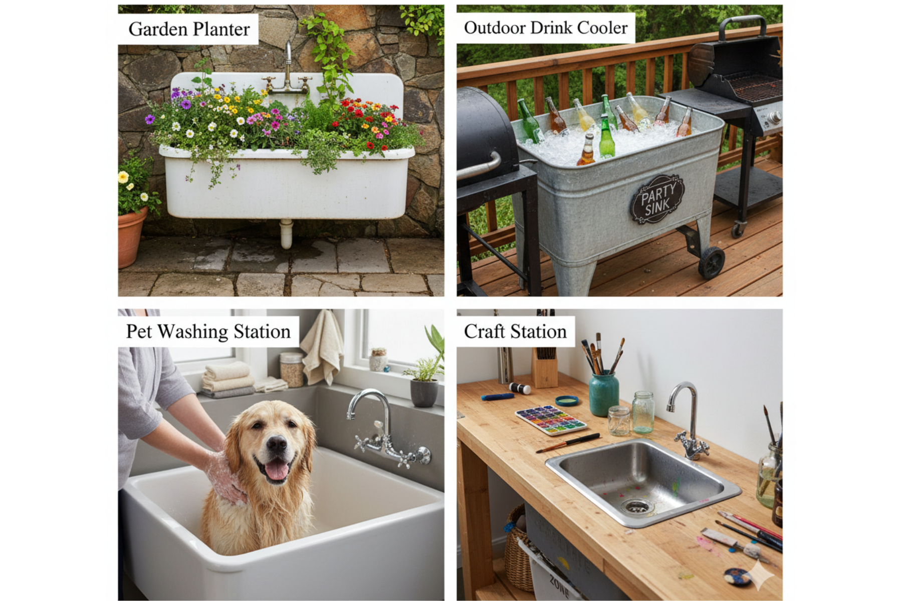 Don't toss that old sink! Before you take it to the landfill, discover creative, functional, and decorative ways to reuse an old kitchen or bathroom basin in your garage, laundry room, or garden.